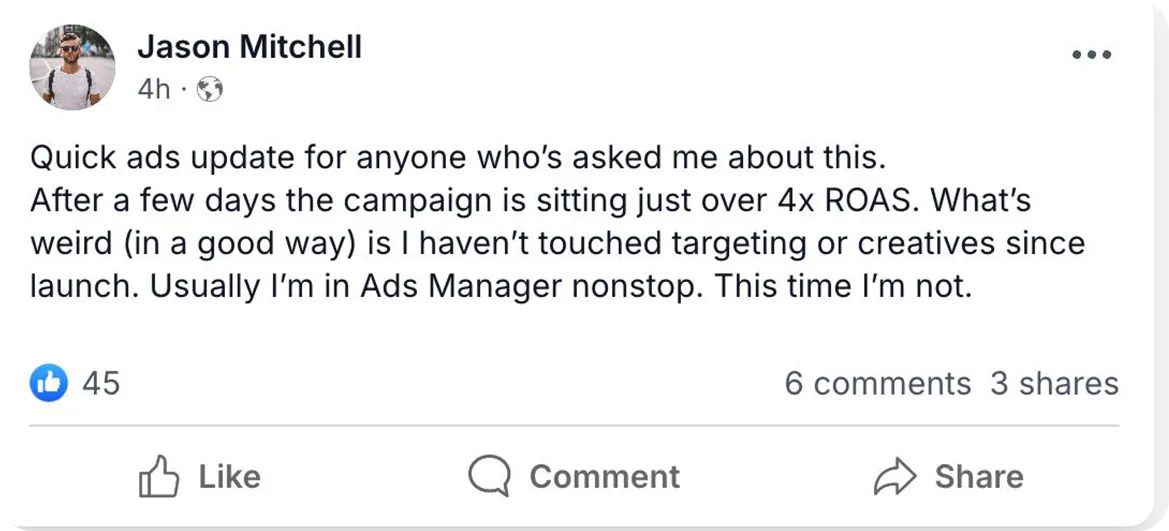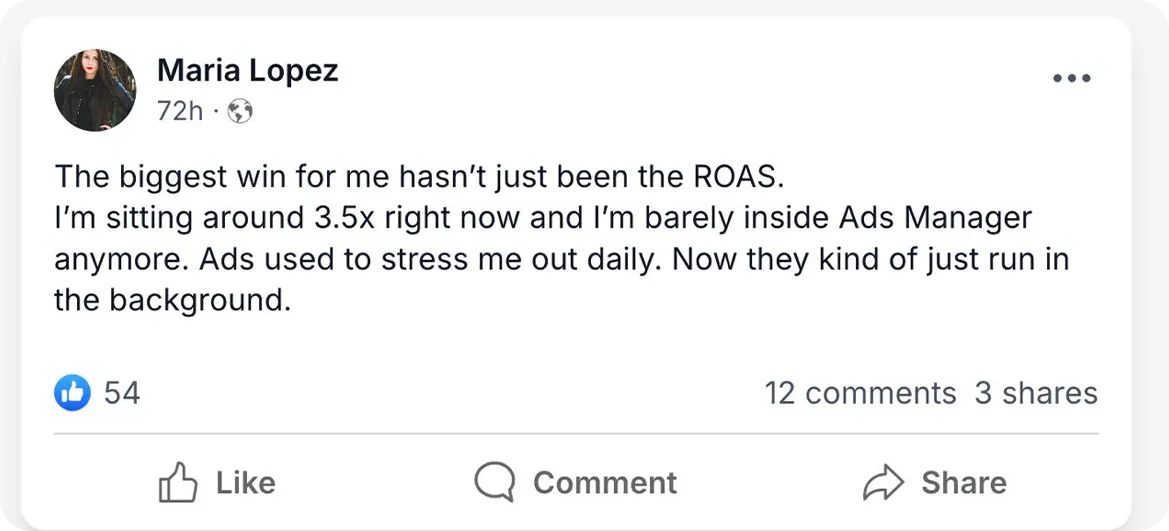 You’ll be surrounded by other advertisers launching and scaling ads using the same system.